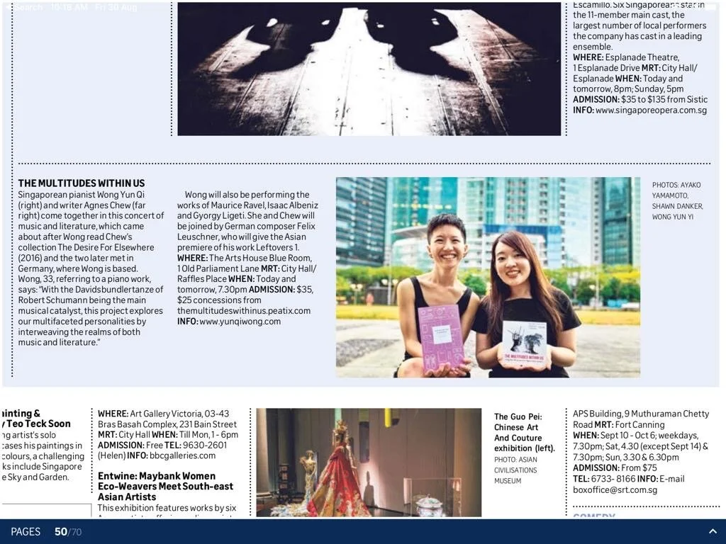 Arts Picks in the Straits Times, thanks to the lovely Olivia Ho!